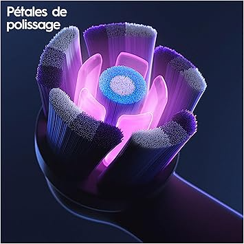 • The Oral-B iO Radiant White toothbrush combines oblique bristles with polishing petals for advanced cleaning and whiter teeth
